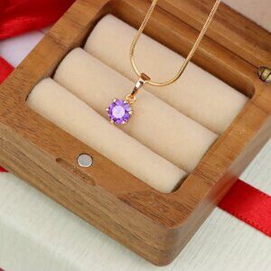"Dainty Purple Round Pendant in Rose Gold Finish – Chic Design,XPPT1850