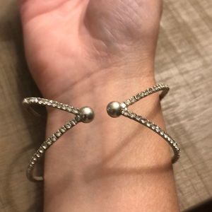 Want a little sparkle without looking bedazzled? This is the perfect bracelet. Elegant and delicate, it is the perfect accessory to dress up an outfit or a big night out. Maneuverable cuff style makes it perfect for wrists of any size.