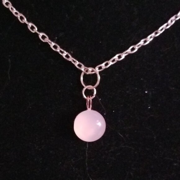 I made this adorable dainty necklace with a rose gold plated bezel to which I added a 12mm Rose Quartz cabochon. I then hung it on a 19” rose gold plated link chain.