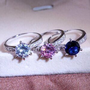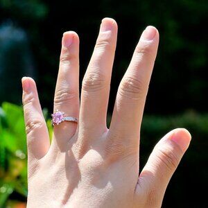 💎 Dainty Round Pink Gemstone Anillos Wedding Silver Ring for Women, VIP520