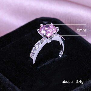 "Dainty Round Pink Gemstone Anillos Wedding Silver Ring for Women, VIP520