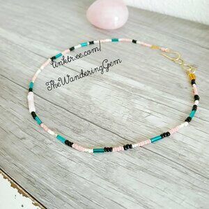 Dainty Shell & Glass Beaded Choker Necklace, Minimalist Seashells Artisan 14"