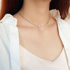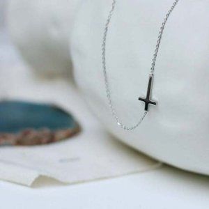 Dainty Sideways Cross Necklace Silver