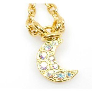 Kirk's Folly rhinestone crescent moon pendant necklace. Signed.