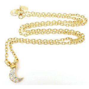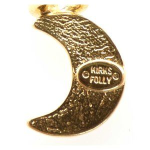 Dainty Signed Kirks Folly Gold Tone Crescent Moon Pendant Necklace Retired
