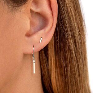 Dainty Silver- Bar Leverback Dangle Drop Hypoallergenic Earring for Women