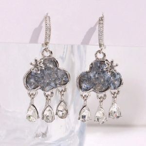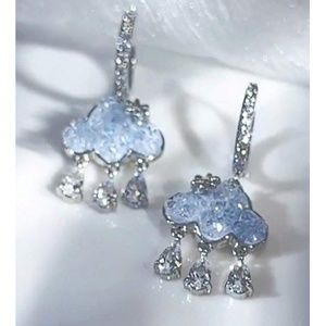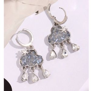 Dainty Silver Tone Rhinestone Clouds Huggie Earrings