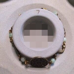 Not Your Average Arm Candy! This slender, dainty and very feminine bracelet features small Green Aventurine Beads, coupled with various bronze colored elements and connectors. The vibe is airy, light and elegant but in a more rustic color scheme of bronze and pale green. It comfortably fits a 6.5-7" wrist.