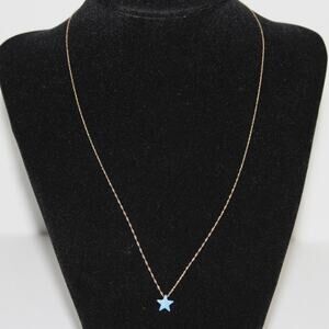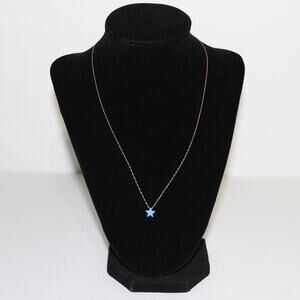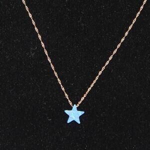 Dainty Solid 14K Gold Necklace with Blue Opal Star Charm
