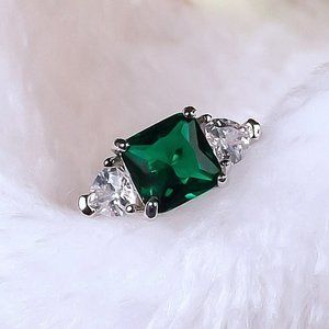 💍 Dainty Square Gemstone Zircon Princess Cut Green Rings for Women, EVGG1240