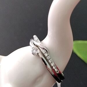Women's Dainty Bridal Style Stacked Ring Set, 2 Piece Women's Stainless Steel Cubic Zirconia Faux Diamond Wedding Set. Ugh Quality Durable Stainless Steel, Hypoallergenic. Brand New, Smoke Free Home, Fast Shipping!