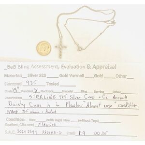 Such a Beauty . Dainty Sterling 925 Silver Cross with lovely Cz accents on 18” Sterling 925 chain in flawless condition. I love resale because you could never get this fine a piece for this price at a retailers . I love selling fine jewelry at costume pricing! Let’s make it yours!