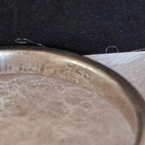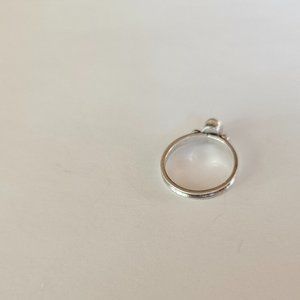 The ring is made of sterling silver and is stamped. The stone is a genuine Fox Mine turquoise stone and is 5mm in length. It is a size 7. It is handmade. The ring is a minimalist in style and is stackable with other rings.