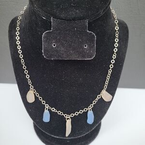 Dainty Sterling Silver Sea Glass Station Necklace Signed 925 India 18 in