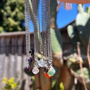 Choose which stone you would like: Rose Quartz, Amethyst, Citrine, Carnelian, Labradorite, Moonstone, Ammonite, Garnet, or Smoky Quartz.
