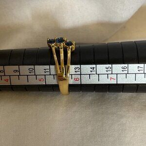 Dainty Triple Blue Stone Gold Tone Statement Ring Size 5.5 Elegant and Fashionab