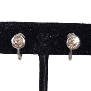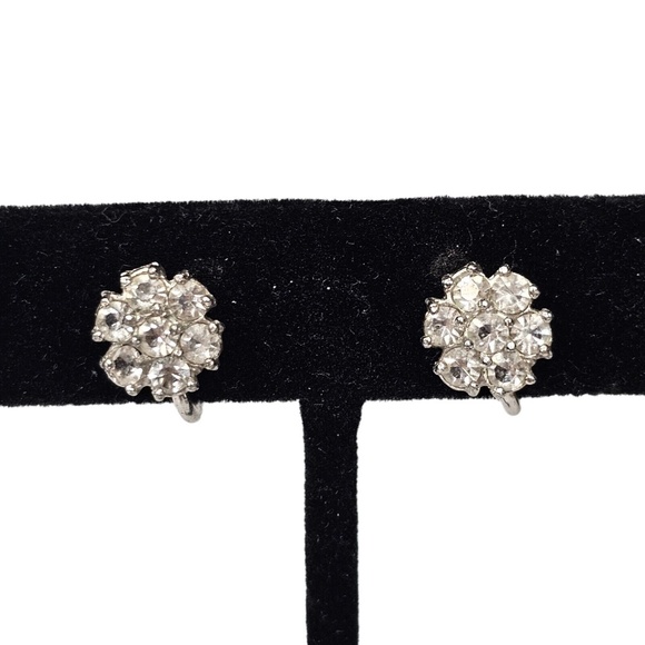 Dainty Tru Kay Sterling Earrings Rhinestone Screwback Vintage 3/8" diame…