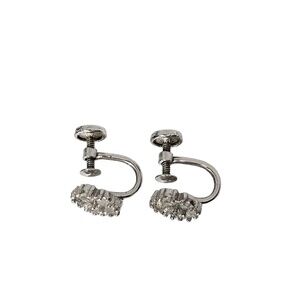 Enhance your jewelry collection with these vintage Tru Kay sterling silver earrings. The screw-back closure adds a touch of security, while the adjustable feature ensures a comfortable fit. The earrings feature a stunning white/colorless rhinestone which is placed in a tipped setting style and is surrounded by glass rhinestones for added elegance.