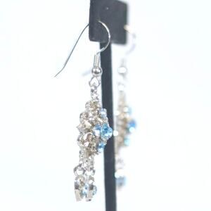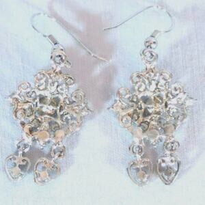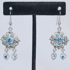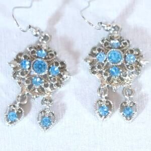 Dainty VIntage Chanelier Earrings Ornate Silver Tone Filagree Cobalt Blue Stone