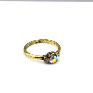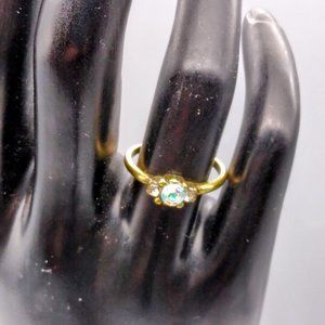 Dainty Vintage Uncas Ring with AB Crystals, Gold Tone with Trinity Stones
