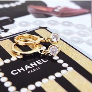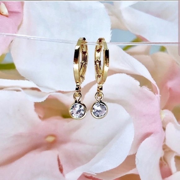 Gold plated cubic zirconia charms on huggie leverbacks.