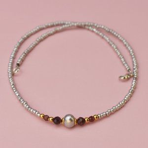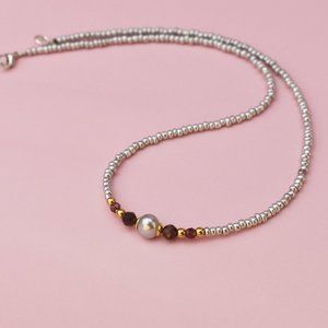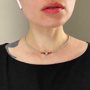 Dainty garnet and real pearl necklace, basic stack boho collar necklace