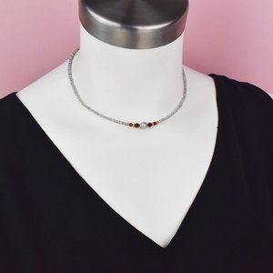 Small stone bead choker, accent quirky gemstone jewelry for women
