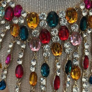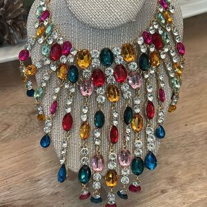 Gorgeous huge jeweled rhinestone statement necklace colorful gold