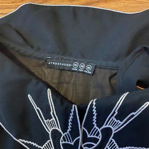 This cute flowy blouse is made from. a semi-sheer fabric,