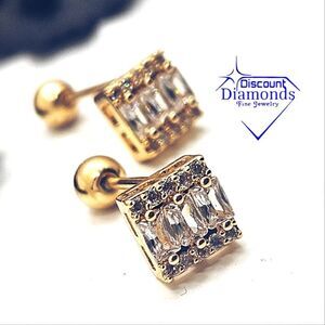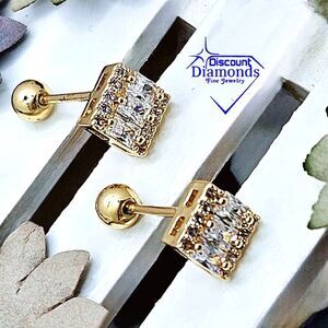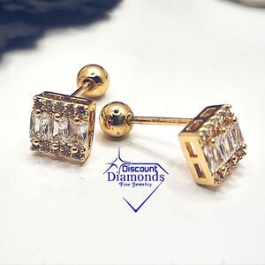 Dainty 18K Yellow Gold Square Design Earrings on 925 Silver