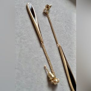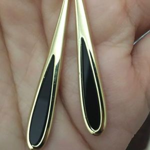 Elegant Dainty Black & Gold Tassel Drop Dangle Earrings
