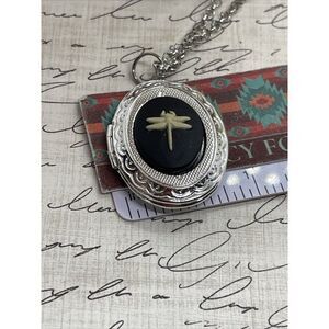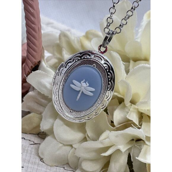 Dainty Cameo Dragonfly Locket Silver Easter Mom Blue White Daughter Gift Wedding