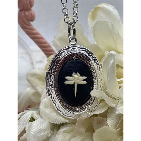 Dainty Cameo Dragonfly Locket Silver Easter Mom Sister Daughter Gift Wedding New
