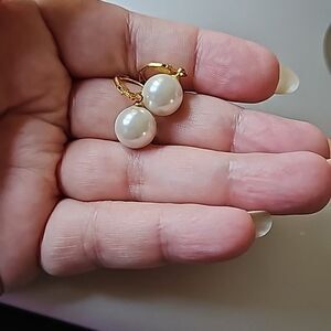 Dainty Fresh Water Pearl Hook Dangle Gold Tone NWOT