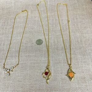 Avon Goldtone clear crystals 15 in, Goldtone red crystal July birthstone 18 in., Goldtone peach crystal 18 in.