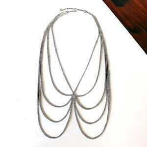 Silver draped harness chain belt! Elegant design with five layered chains dangle to wear high waisted or low waisted depending on your style! Adjustable clasp closure for perfect fit! Body jewelry, silver chain belts.