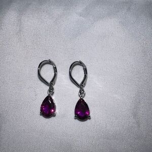 Dainty and so pretty! Beautiful deep, dark pink stone on silver tone drop