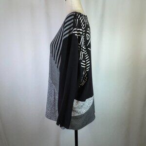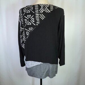 Dairi Morocco Artsy Top Knit Patchwork Black White 3/4 Sleeves Natural Fibers OS