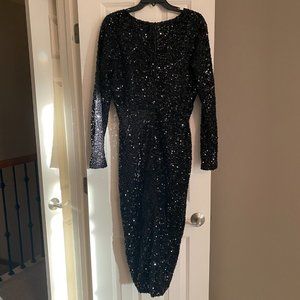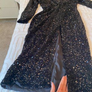 Daisha Sequin Dress from Grass Fields. Low cut with thigh slit. Perfect for NYE or any night out!