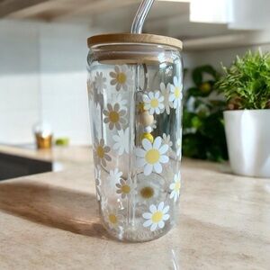The perfect summer gift to give to a friend. New White Daisy 🌼 Libby glass with Bamboo lid.