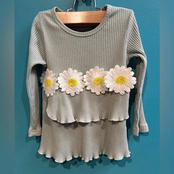 This charming kids top features delightful floral embellishments, perfect for adding a touch of whimsy to any outfit. The soft gray color makes it versatile for any occasion.