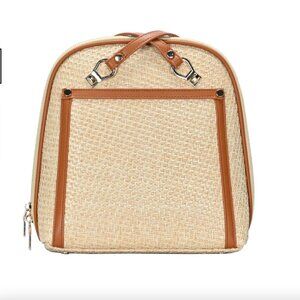 Daisy Bamboo Straw Convertible Backpack - Light Taupe