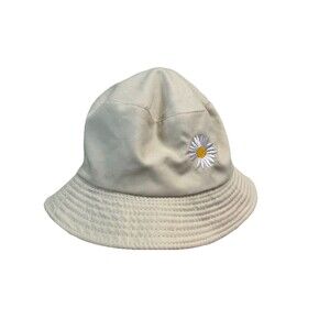 Daisy Bucket Hat Cap Beige Black Reversible OS Women's