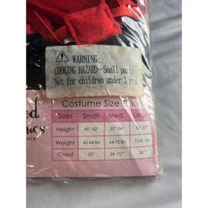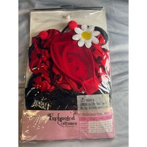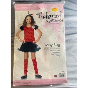 Petticoat dress with daisy applique, wings, headband and leg warmers. Small fits sizes 4-6; 32-42 inches tall. Ages 3-4. Bin h1