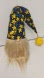 He is weighted with rice and premium poly-fil, has a wooden nose, and a long flowing blonde faux fur beard. He is wearing a long blue and yellow daisy printed hat with a yellow sparkly pom pom on the tip, and a bumble bee going along for the ride. He stands approximately 8" tall and 16" to the tip of his hat.