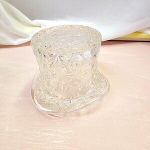 Daisy & Button Fenton Clear Glass Top Hat Dish or Vase, Vintage Decor