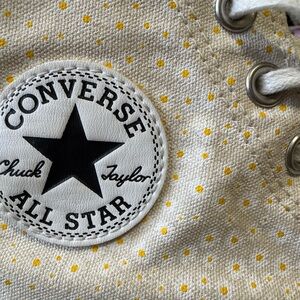 What makes them truly special is the all-over embellishment: a scatter of tiny white daisies with cheerful yellow centers, printed across the entire canvas upper. The floral pattern feels whimsical and fresh—like a field of wildflowers against a summer sky—while the clean white base keeps the look bright and versatile.