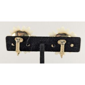 White petals with yellow center on clip ons, Vintage signed Sarah Coventry Measurements are approximate: 1 inch diameter.