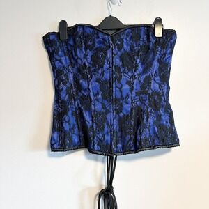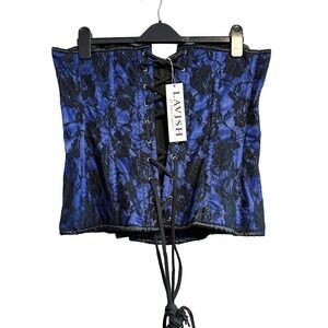 Daisy Corsets Lavish Lace Zipper and Lace-Up Blue Black Corset NWT Size XXL