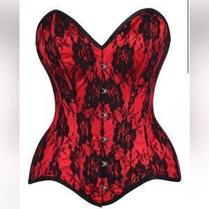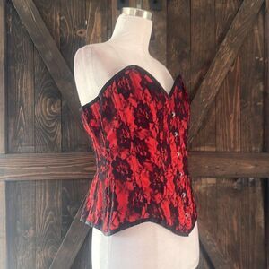 Daisy Corsets Top Drawer Red Satin w/Black Lace Overlay Steel Boned Overbust
